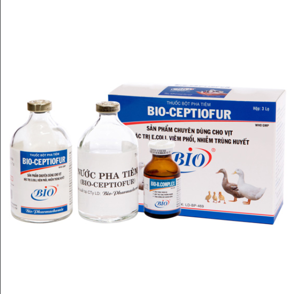 - Gà, Vịt: 1 ml / 10 kg thể trọng, ngày tiêm 1 lần, tiêm bắp hoặc dưới da, liên tục 3 ngày. Có thể phối hợp 1 ml dung dịch Bio-Ceptiofur + 1 ml Bio-B.Complex = 2 ml tiêm được 10 kg thể trọng, giúp thú mau lành bệnh.